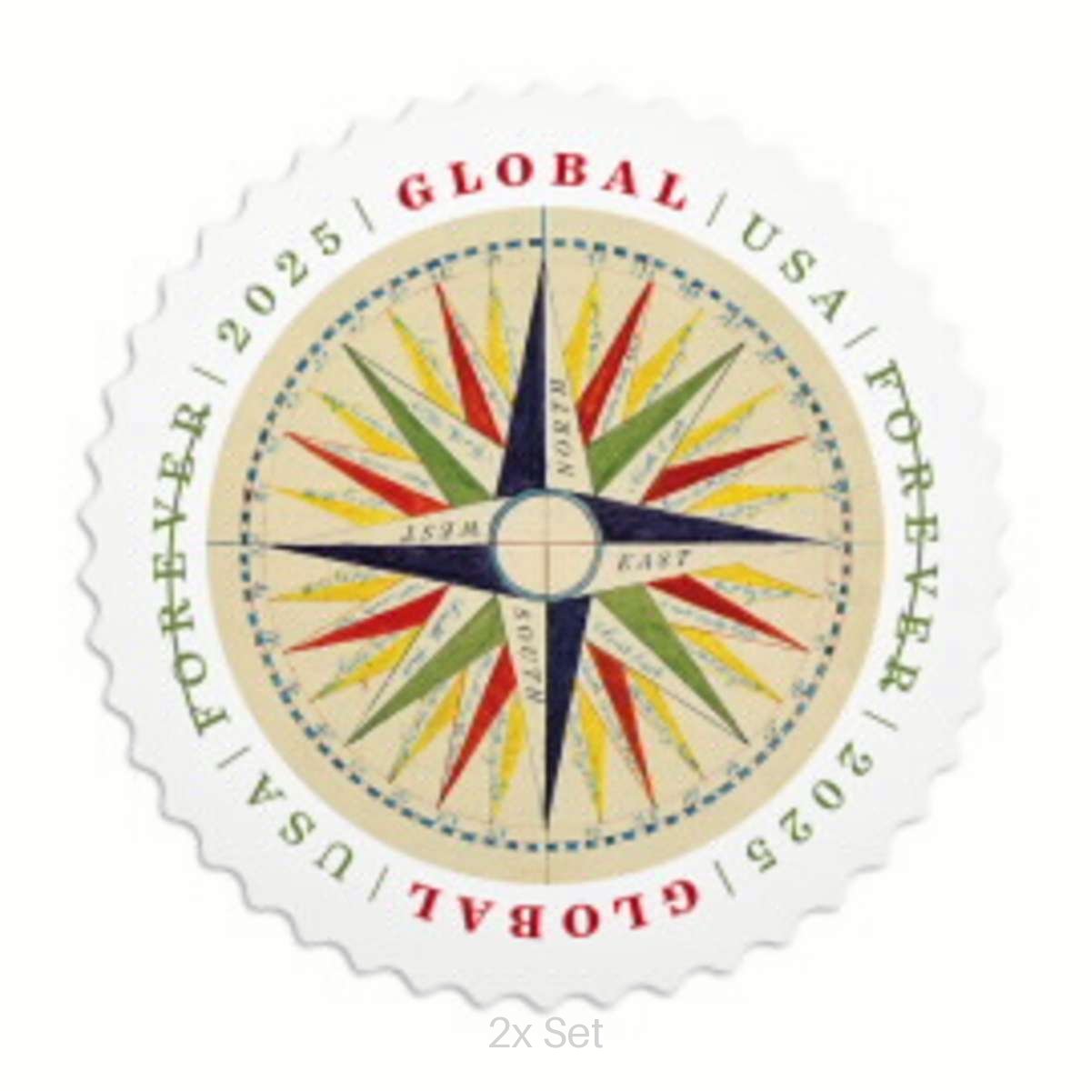 The 1794 Compass Rose Global Forever stamps are intended for use on international mailpieces that conform to the First-Class Mail International single-piece standard. Their distinctive compass rose design adds historical and visual interest to correspondence sent across borders.