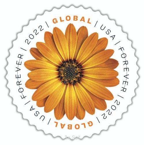 Design Purpose: Issued on March 14, 2022, this stamp features a vibrant orange African Daisy (Osteospermum) photographed from above, showcasing its intricate central disk and radiant petals. The round shape symbolizes global unity and the beauty of nature shared across borders. It’s the 9th issue in the Global Forever series, celebrating international connection through floral elegance.