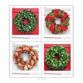 Celebrate the season with timeless elegance. The USPS Holiday Wreaths Forever Stamps feature four beautifully designed wreaths, each symbolizing warmth, welcome, and tradition. Created by former White House floral designer Laura Dowling, these stamps bring a touch of holiday charm to every envelope.